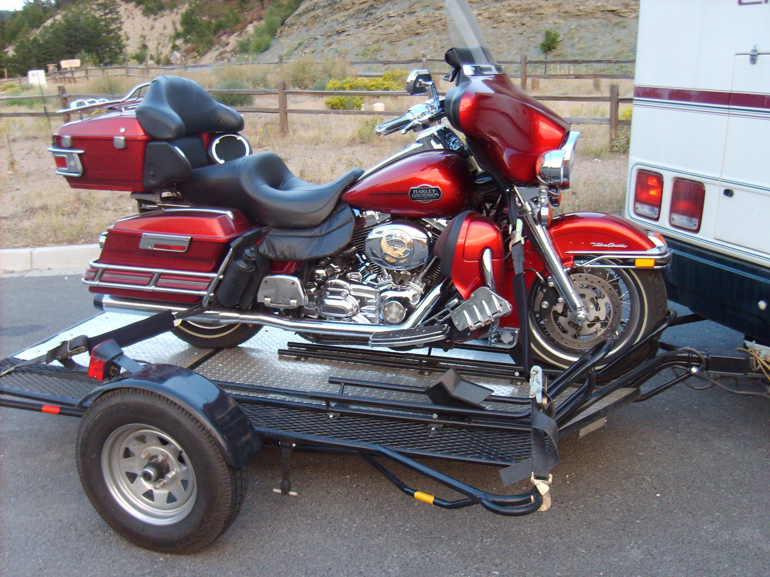 The trailer after my RV accident. It jackknifed into the rear bumper causing a crack and a small scratch on my lower, other than that there was no damage to the motorcycle thank god.